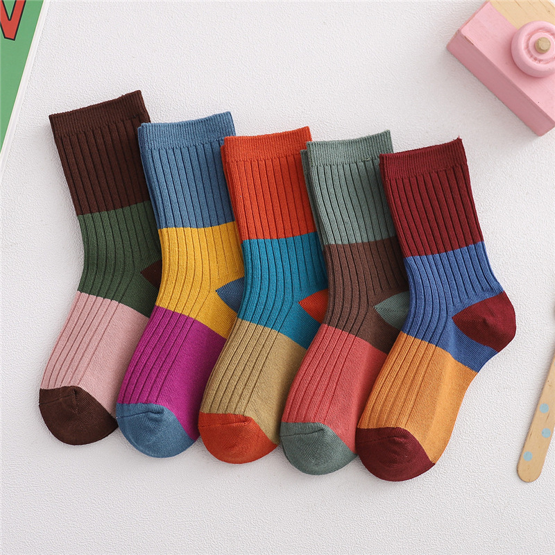 Tide socks Children's socks Pure cotton men's and women's children's tube socks Spring and autumn thin baby boy color autumn and winter thick cotton socks