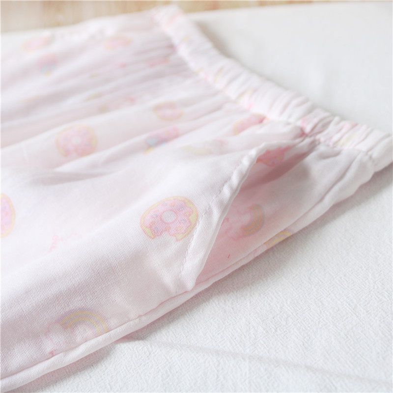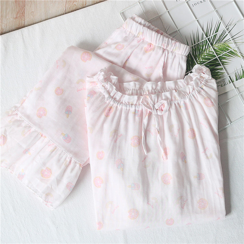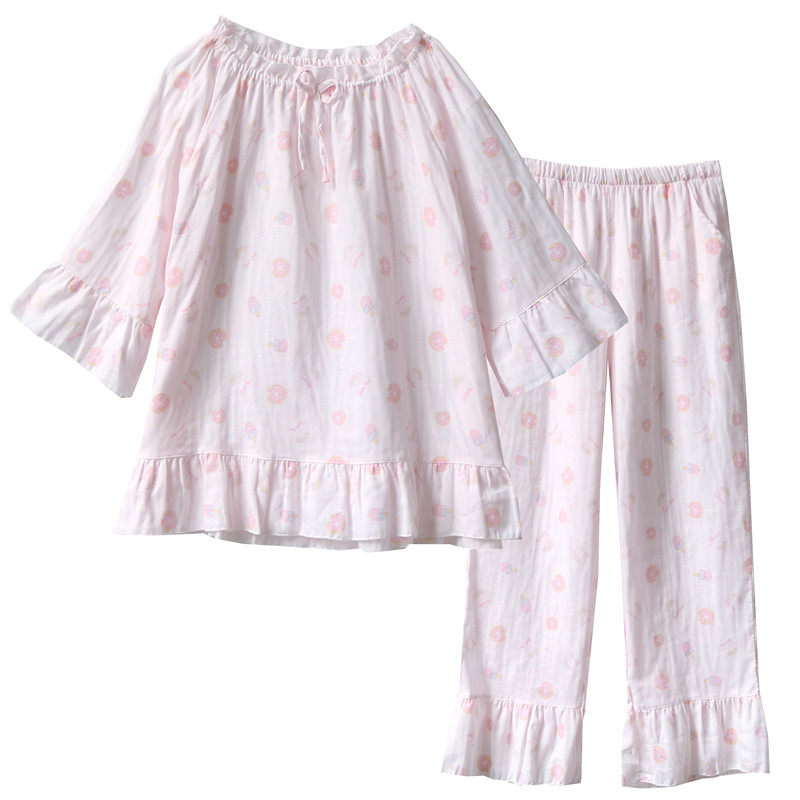Sweet Beauty Van Fall Pyjamas Women's Pure Cotton Cotton Cloth Round Collar Cover Head Long Sleeve Double Cotton Yarn Home Suit Spring Thin