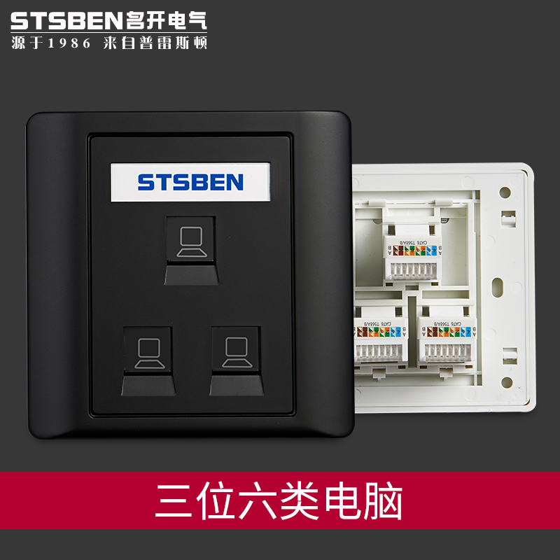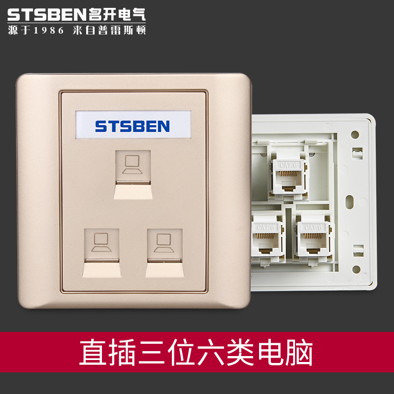 Three six types of network cable sockets (gold) Straight inserted three six types of cable sockets (gold) Three six types of network cable sockets (black) Straight inserted three six types of network cable sockets (black) Three six categories