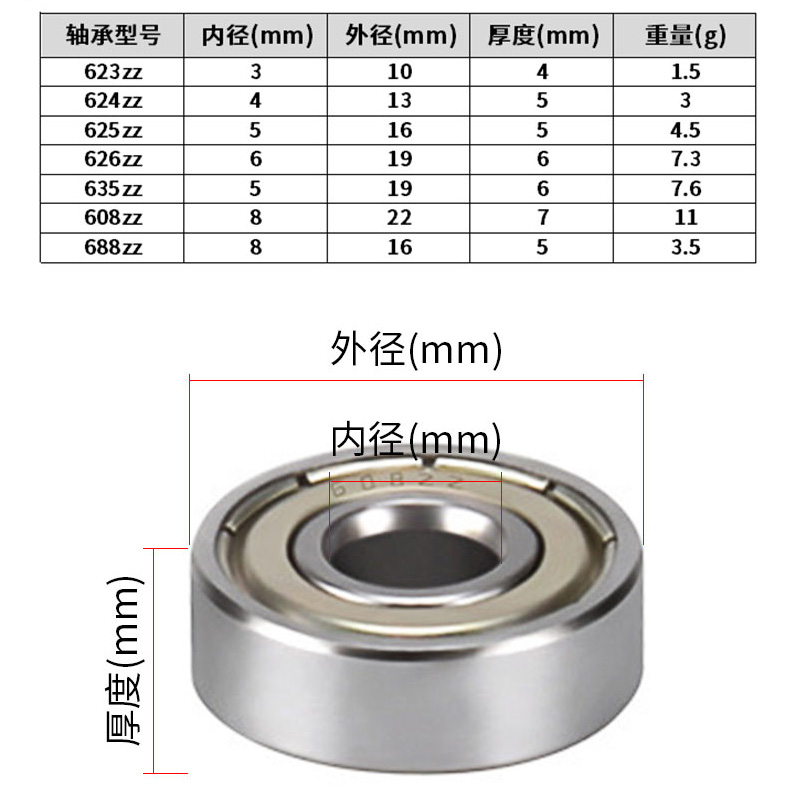 3D Printer Accessories Deep Groove Ball Micro Small Bearings Rolling 608624625626 688zz-Taobao