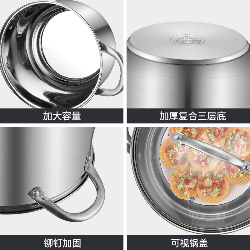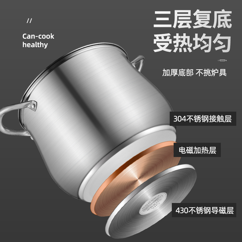 Soup pot 304 stainless steel home cooking broth gas induction stove special pot steaming stew thickened large capacity staying porridge high in saucepan