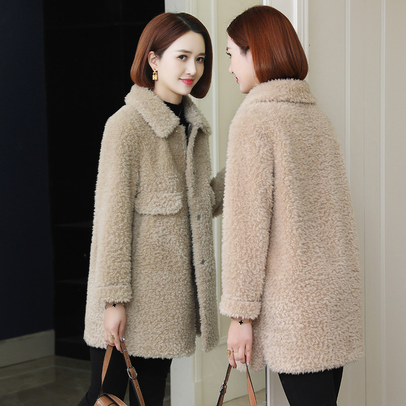 zqqz sheep cut velvet big coat woman medium long version fur integrated 2022 new lamb wool fur leather straw jacket 2257