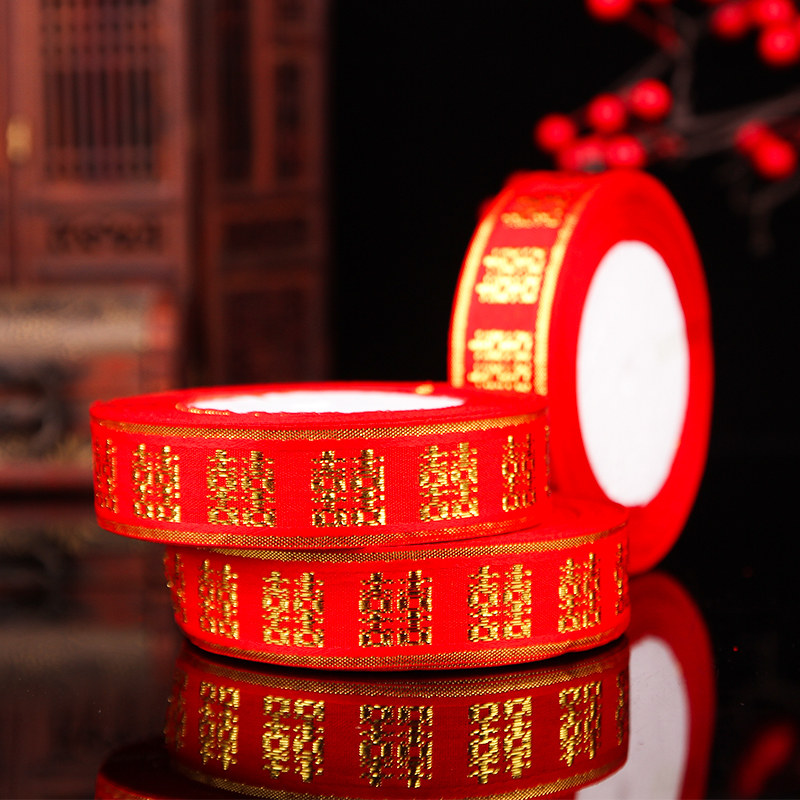 Double Happiness ribbon 1 roll (length about 18m wide 2 5cm) Round Happiness ribbon 1 roll(length about 22m wide 2 5cm)Heart Happiness ribbon 1 roll(length about 22m wide 2 5cm)