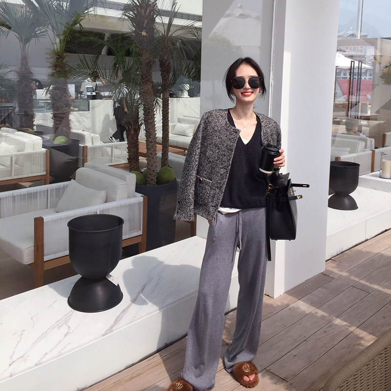 LICKYSENIOR WORD-of-mouth RETURN SUPER LOVE ITEM CASHMERE KNITTED mop PANTS WOMEN's LOOSE HIGH WAIST WIDE PANTS