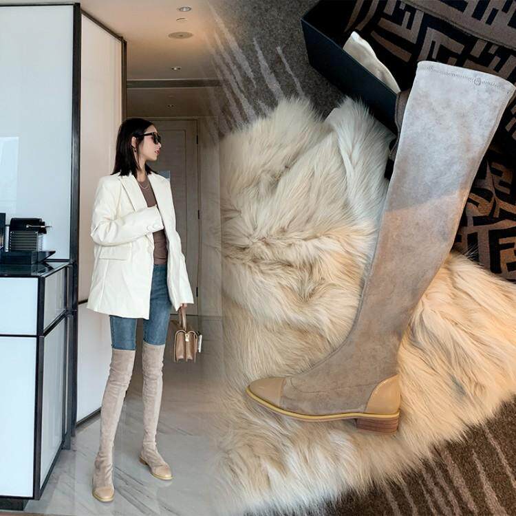 Autumn khaki boots women's over-the-knee thin leg elastic boots flat really thin all-match knight large size 41
