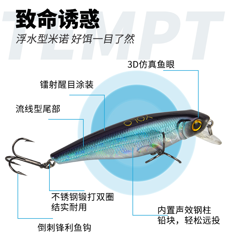 YOLO floating water minolo bait bait bait bass warp YLH001 80MM 9 3g