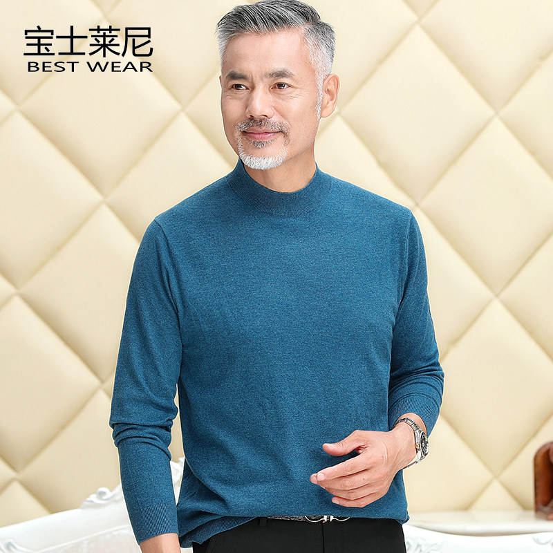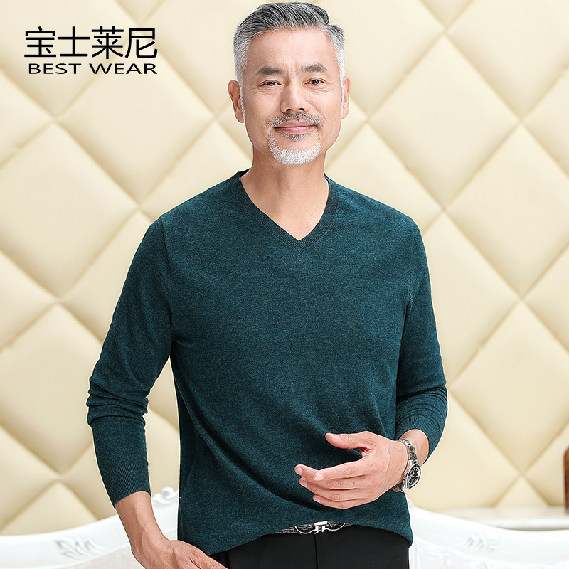 Middle-aged and elderly men's round neck knitted pullover sweater long-sleeved T-shirt dad's dress spring and autumn thin bottoming shirt grandpa's dress