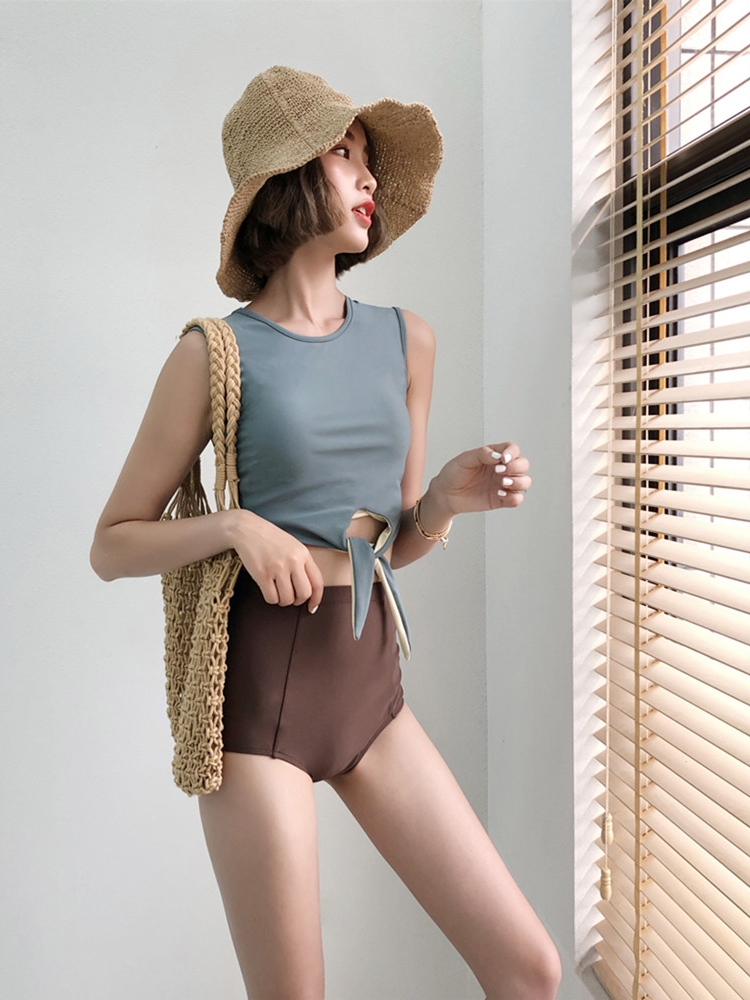 Sexy swimsuit women 2021 new split two-piece conservative thin Belly Belly bikini small chest gathering swimwear