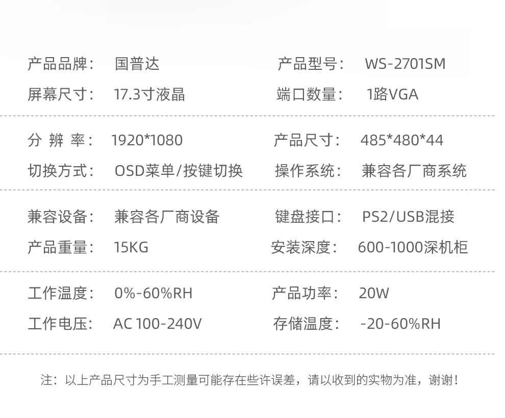 National Puda KVM switcher HD 1920 * 1080 rack liquid crystal KVM kit 1-port USB switcher WS-2701SM