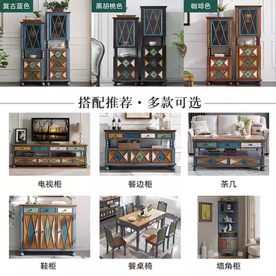 American solid wood wine cabinet small apartment living room TV cabinet high and low side cabinet storage cabinet dining room retro storage cabinet