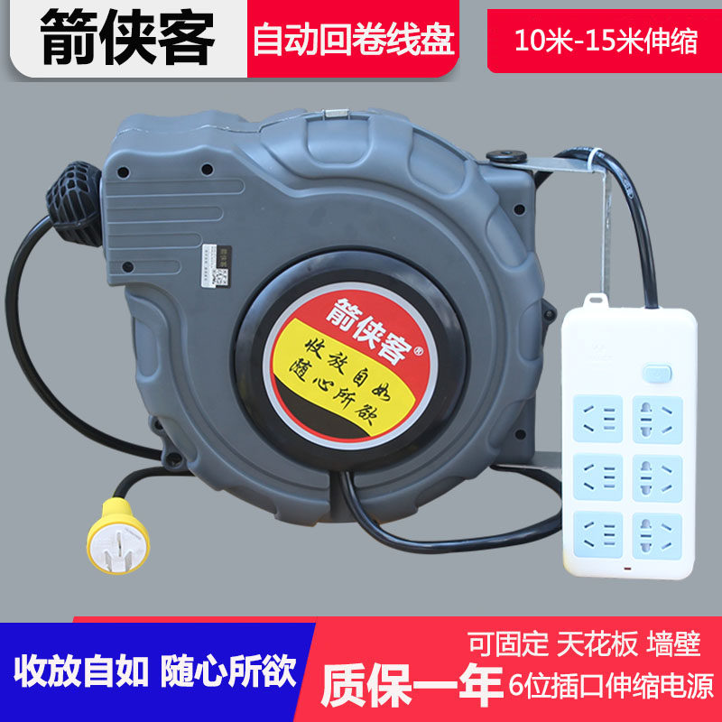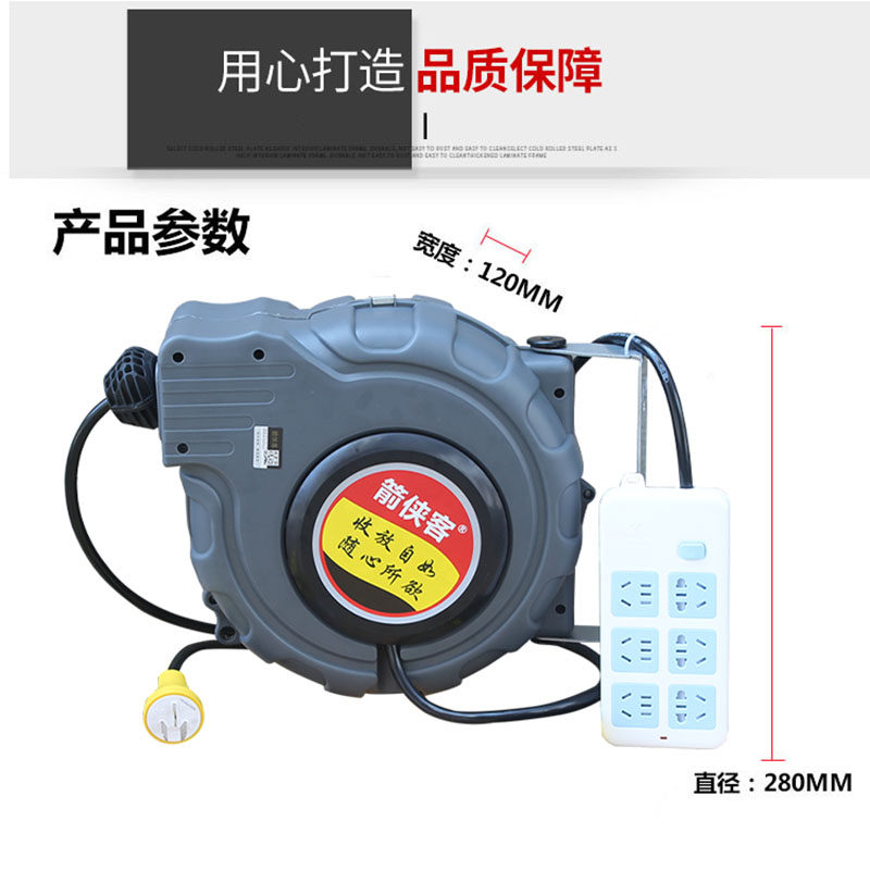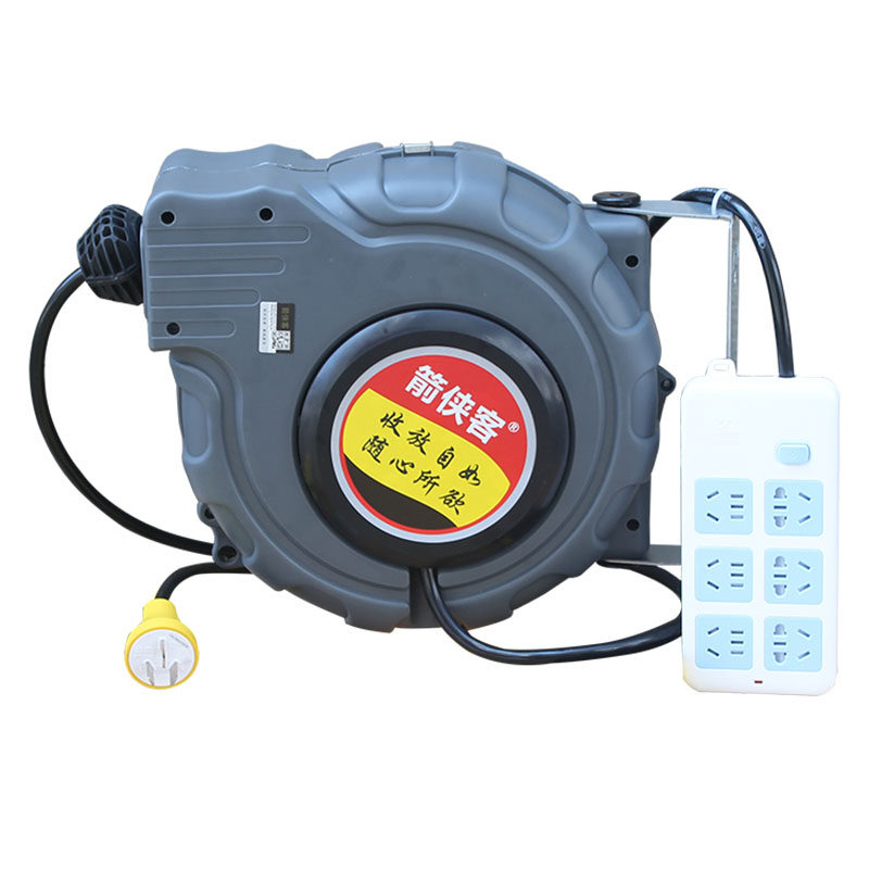 Electronic drum Automatic telescopic back volume power cord take-up shrink coil pipe 10-15 meters 2 3 core wire drum 6-bit socket