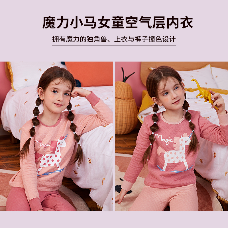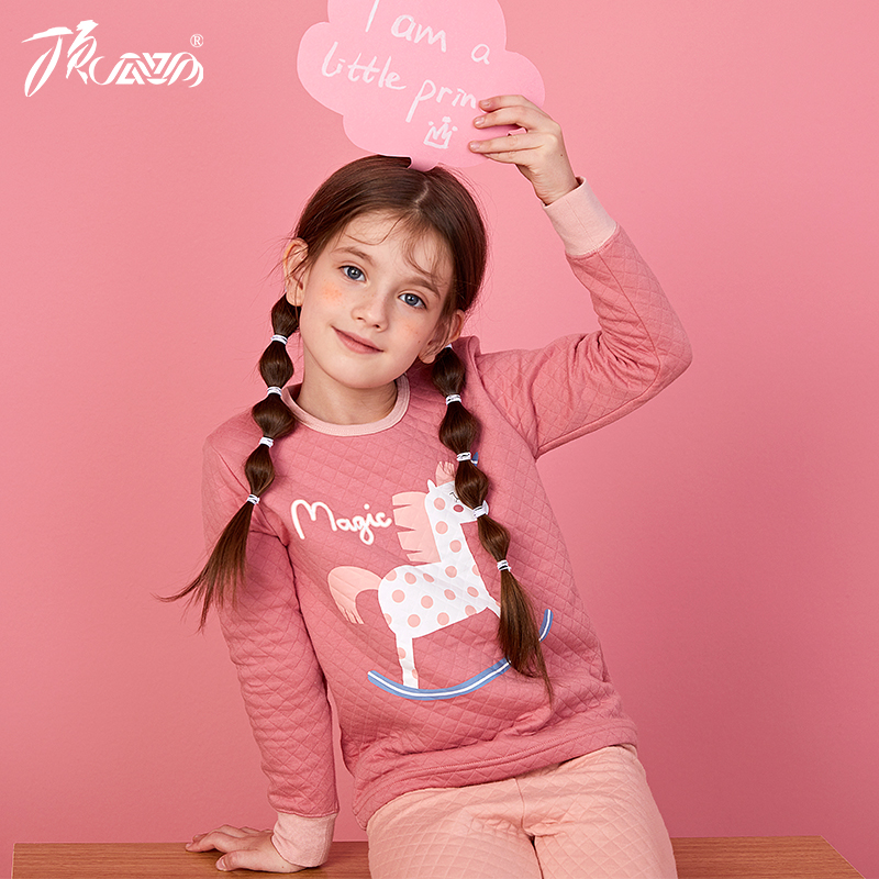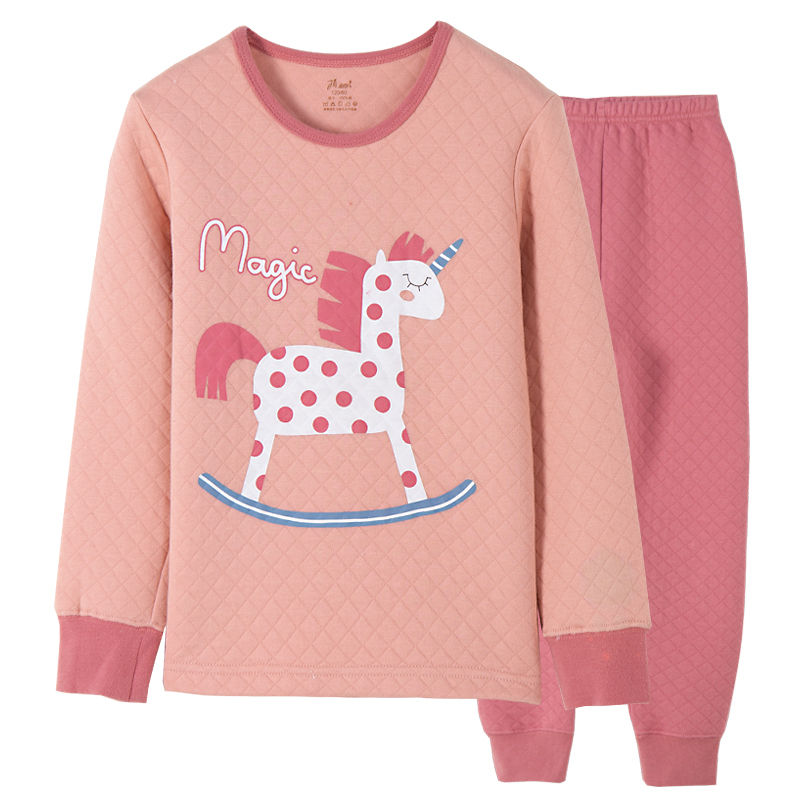 Top-Pipermy three-layer clip cotton children warm underwear air layer autumn and winter girl autumn clothes sanitary pants round collar pure cotton suit