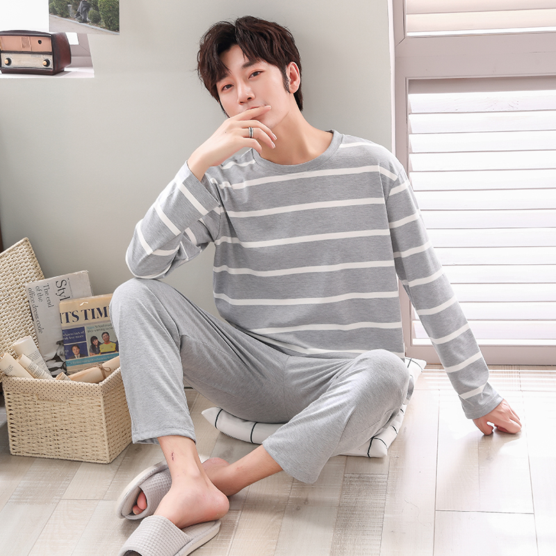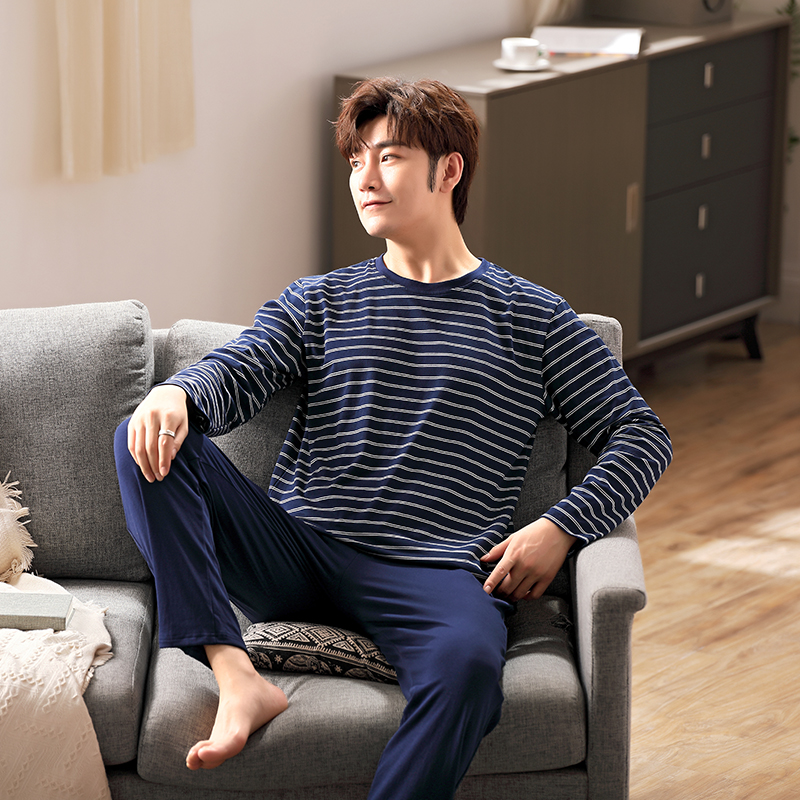 Antarctic pajamas men's autumn long-sleeved cotton striped autumn and winter models can be worn outside men's youth homewear suit