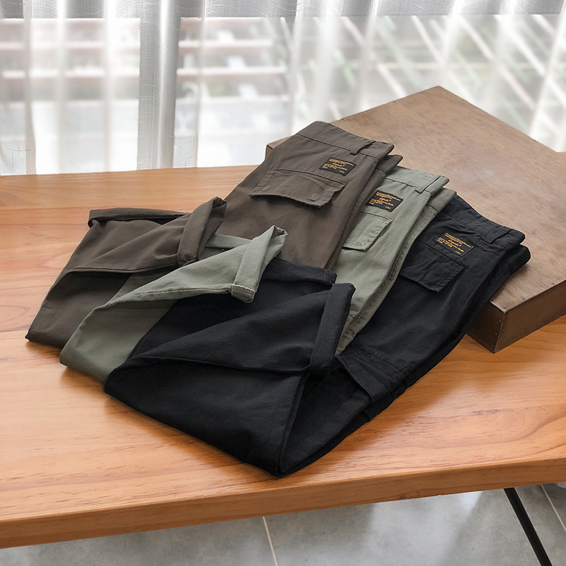 A wave of good goods Hong Kong-funded Japanese style cotton woven work clothes with multiple pockets small straight 9 5 points casual pants trousers A