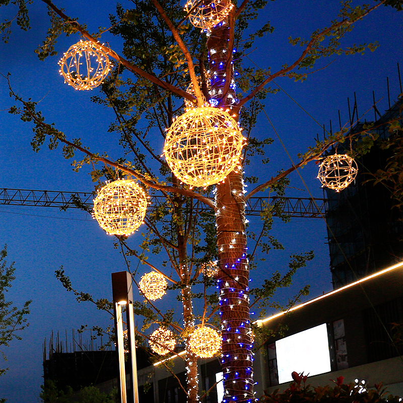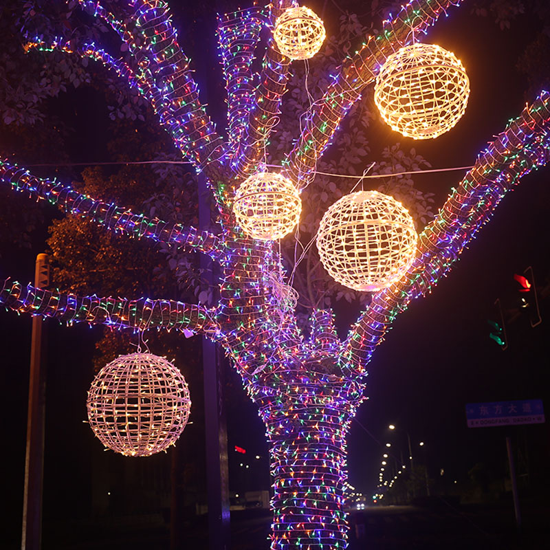 Rattan ball tree lights colorful lights flashing lights string lights full of stars outdoor waterproof lighting project led ball lights hanging tree decoration