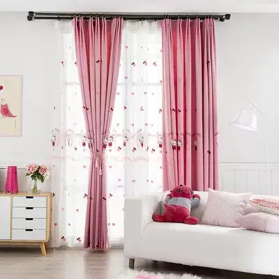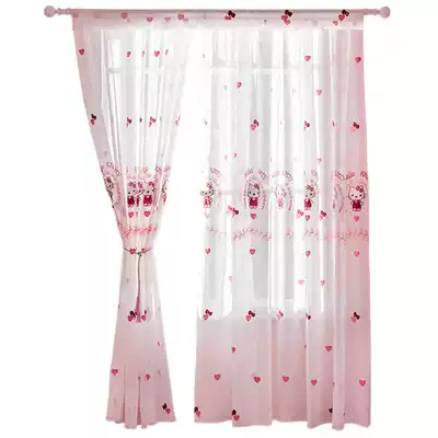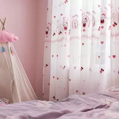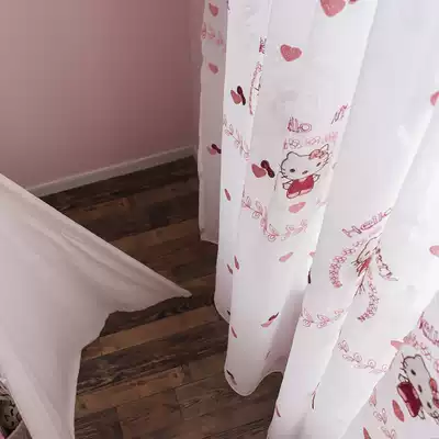 Customized Korean pink princess room warm children's bedroom floor-to-ceiling bay window cartoon cat finished embroidered curtain