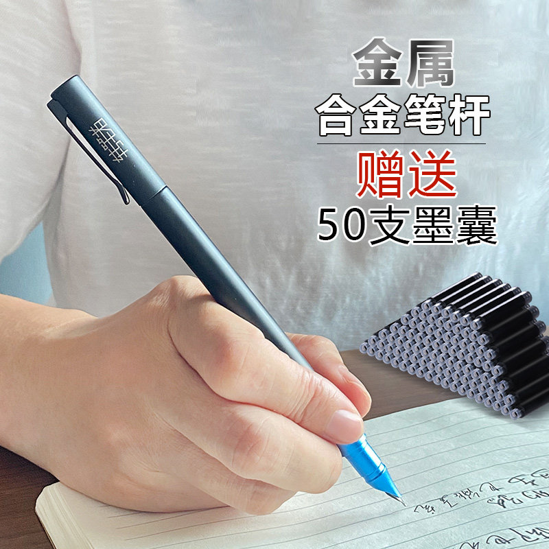 Transfer writer pen metal student special aluminum alloy pen lever men's upscale texture frosted pen ink sack can replace practicing character business office sign pen gift gift-giving gift-free lettering box dress