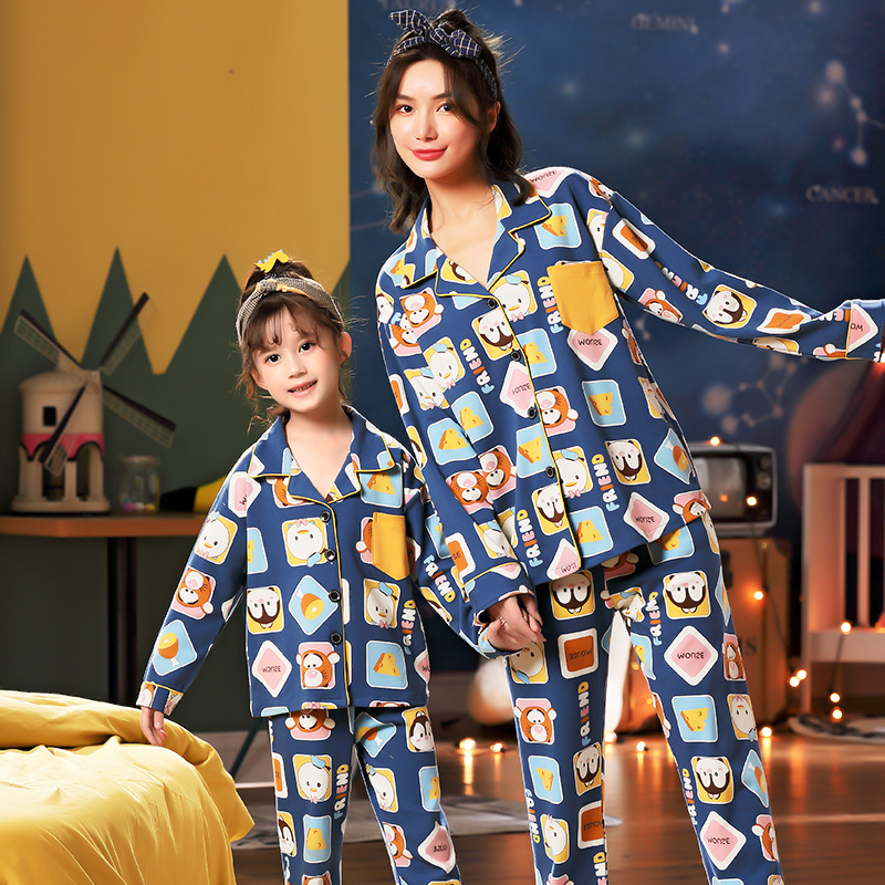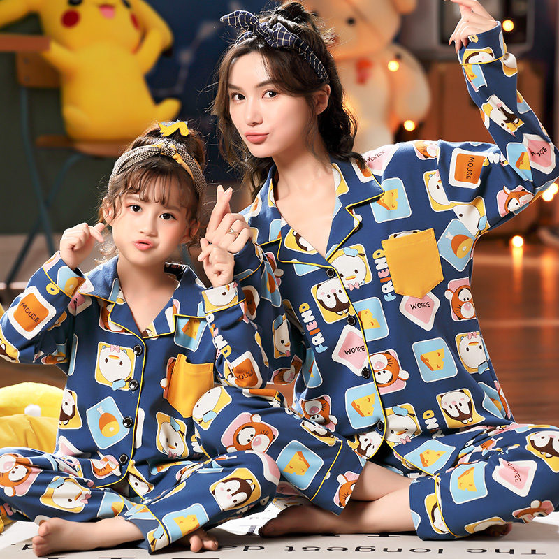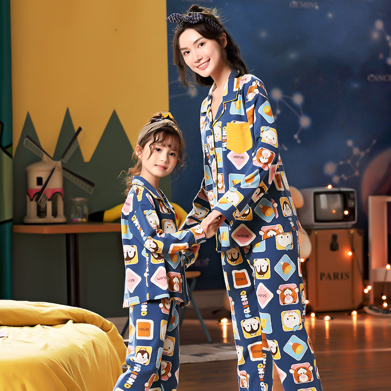 Parent-child pajamas Children spring and autumn long-sleeved pure cotton girls thin summer mother-daughter family suit Little girl home clothes