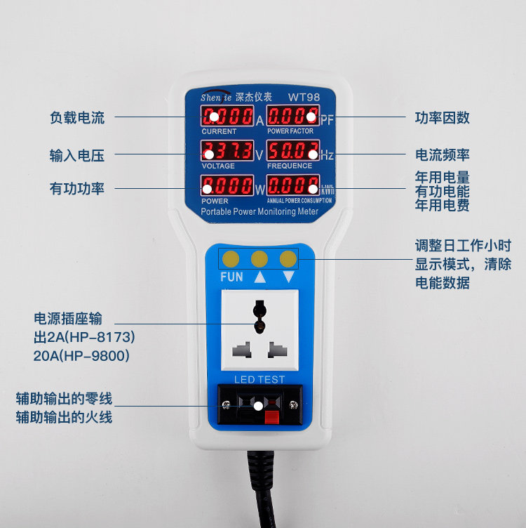Power Meter Electric Bill Metering Socket Test TS-F4 Power detector LED Lamp tester Electric quantity Display