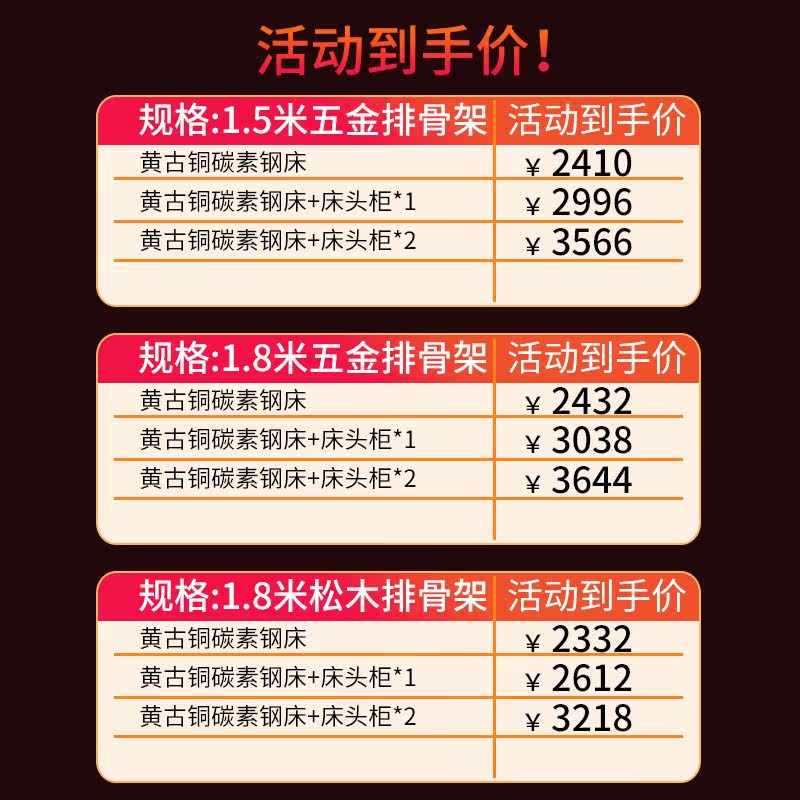 Single bed with hardware frame Single bed with pine wood encrypted rib cage Single bed with hardware rib cage + bedside table *1 Single bed with hardware rib cage + bedside table *2 Single bed with pine wood encrypted rib frame + bedside table *1 Single bed with pine wood encrypted rib cage + bedside table *2