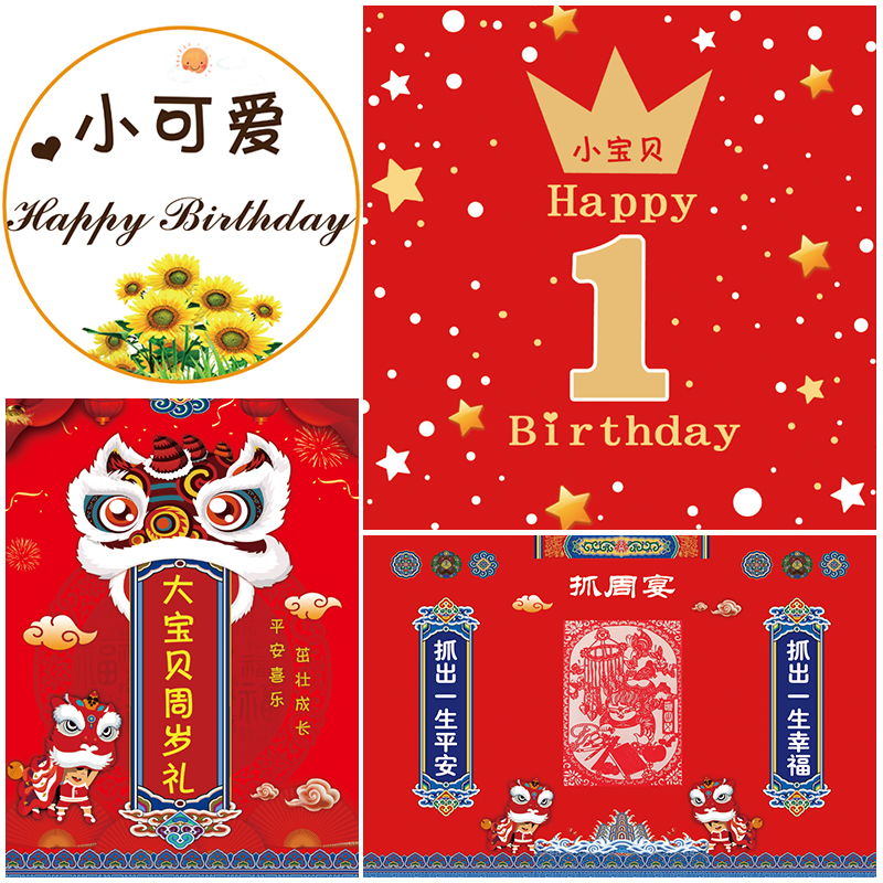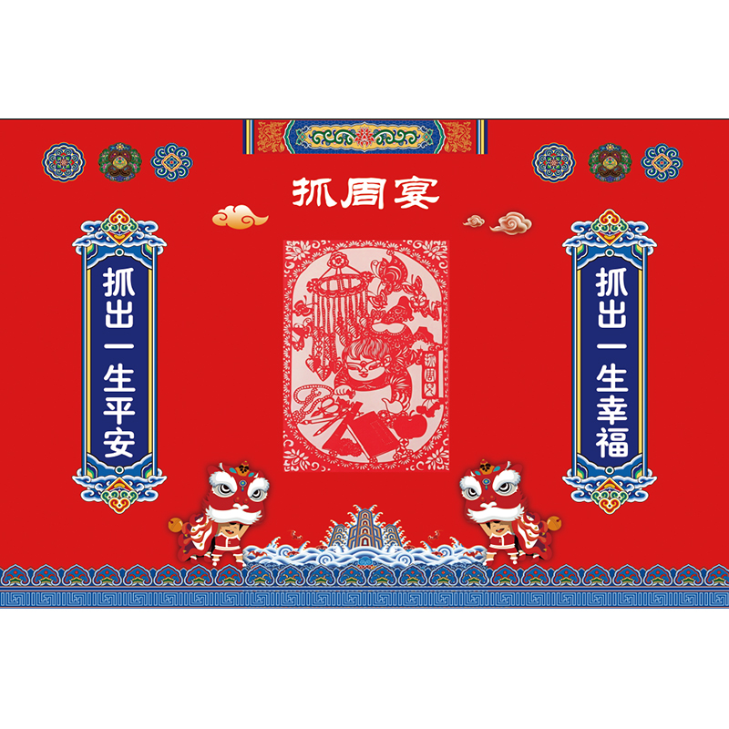Baby grabbing weekly supplies hundreds of days old grab birthday poster customized Chinese full moon scene layout decorative background