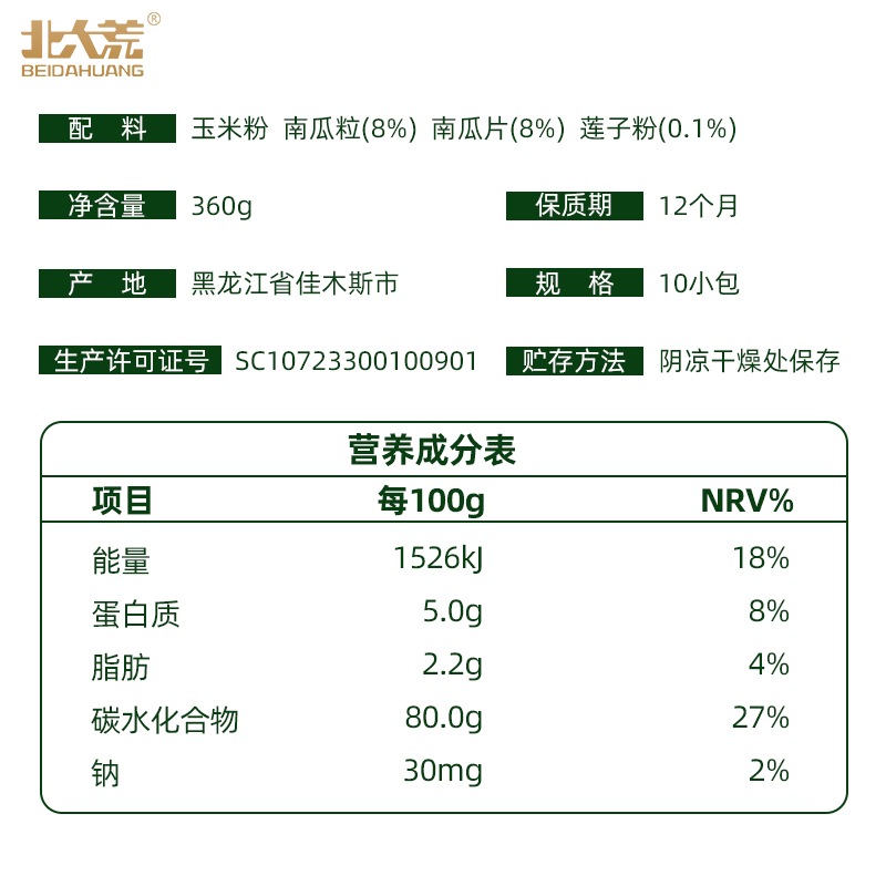 North Great Wilderness Corn Burnt Pumpkin Lotus Seed Corn Burnt 360g tortillas Lazy People Breakfast Ready-to-eat to Drink Groceries