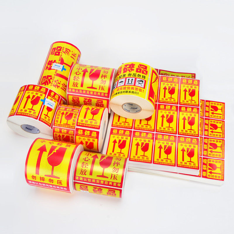 Fragmentation label sticker 100*100 large custom express logistics English packaging glass do not press carefully, lightly take the label warning stickers small self-adhesive anti-drop disposable labeling