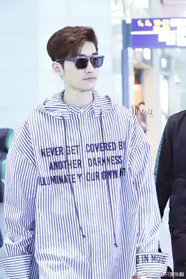 If Paris is unhappy, Zhang Han, Tong Zhuo Yao, the same striped hooded letter thick cotton T jacket for men and women