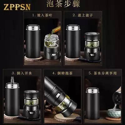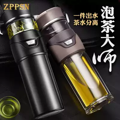 ZPPSN men's business tea water separation tea cup 304 stainless steel heat-resistant insulation car double glass water cup