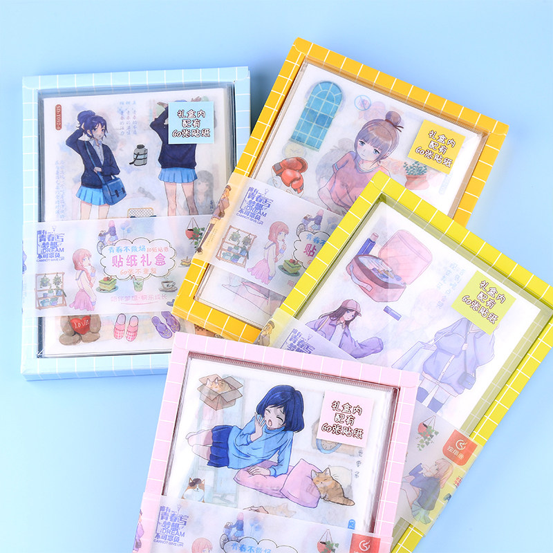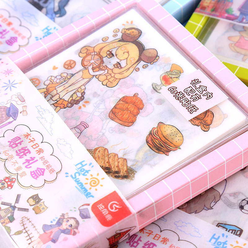 60 Japanese network red hand account sticker set a sticker ancient and paper cartoon character cartoon cute girl heart material big gift bag walking stick book ins wind diy decorative small pattern