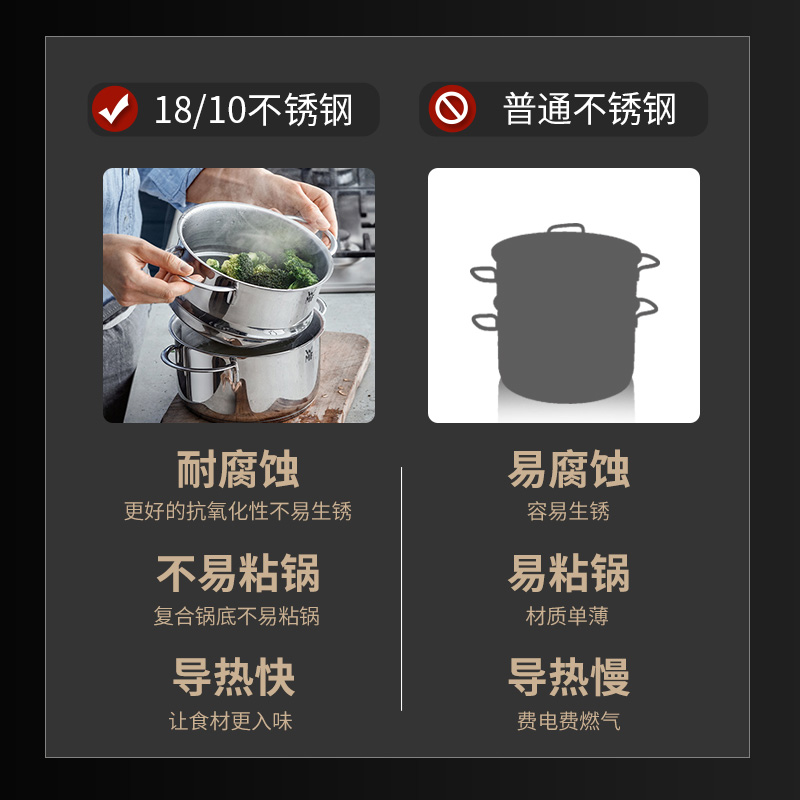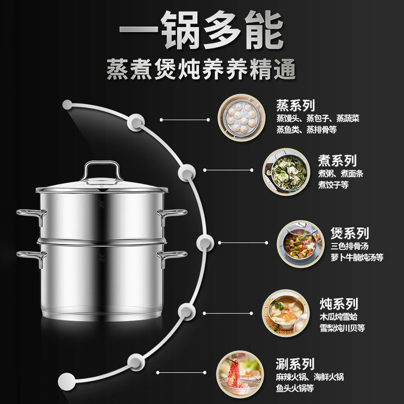 Germany WMF steamer home 304 stainless steel thickened double-layer small steamer soup pot cooking induction cooker gas stove