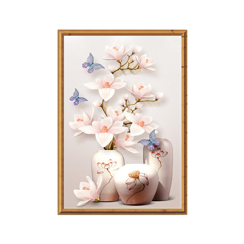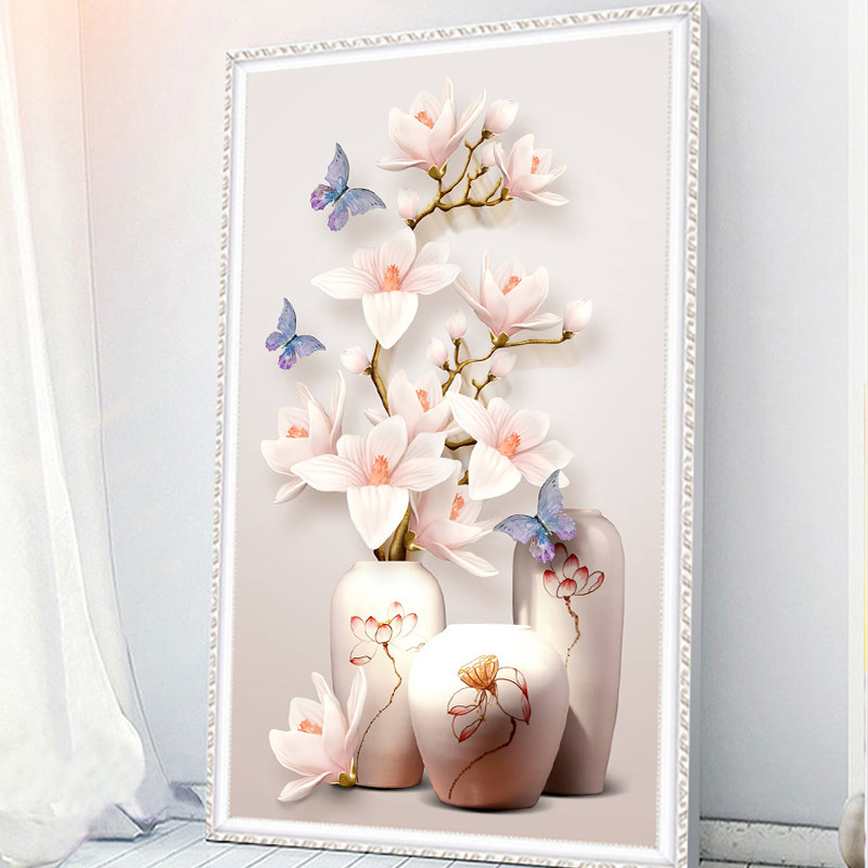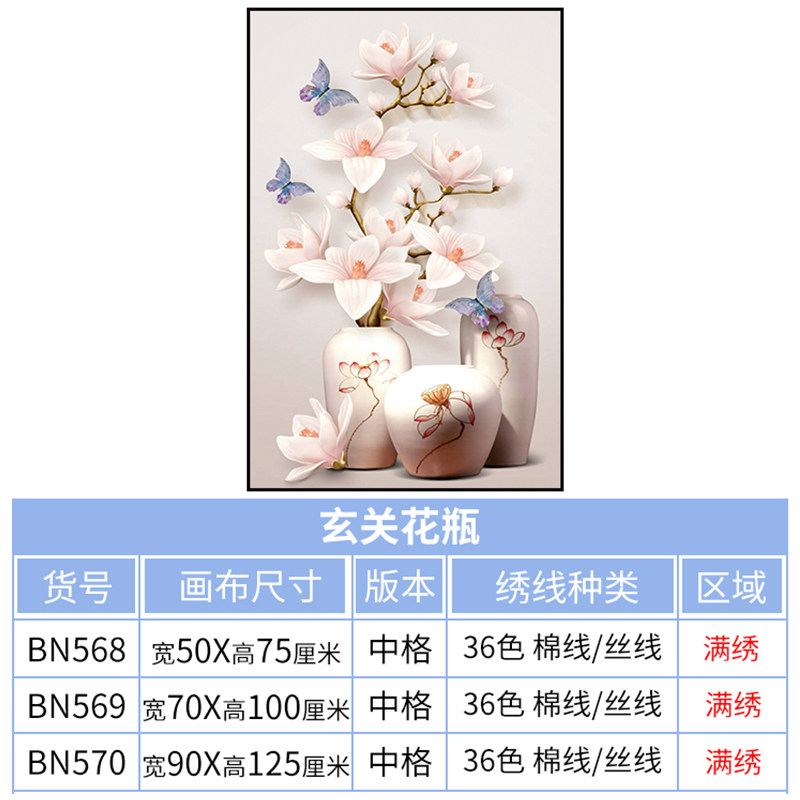 2022 new cross-stitch porch vase living room vertical version large-scale self-embroidery handmade thread embroidery full embroidery simple and modern