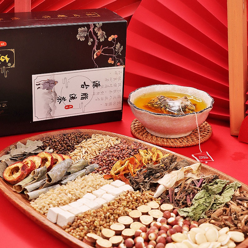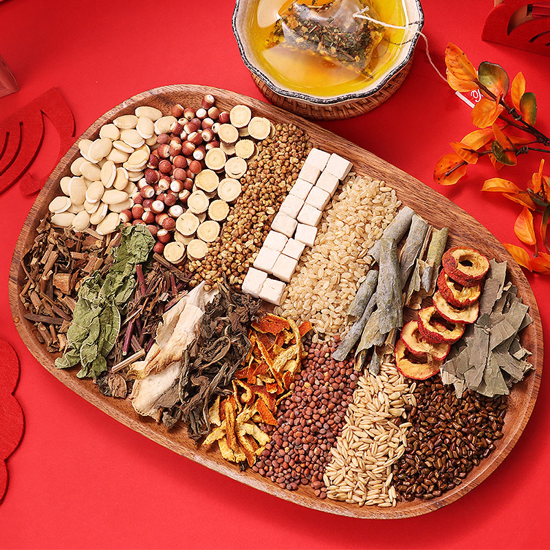 Lotus leaf, wax gourd, brown rice, hawthorn, tartary buckwheat, cassia seed, poria cocos, mulberry leaf, white lentil, barley, orange peel, licorice, Gorgon seed, radish seed, bergamot, ageratum mint, dandelion