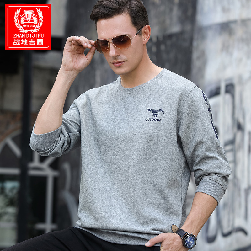 Spring and Autumn Season sweatshirt male round leader Long sleeves T-shirt men's bottom shirt cotton quality breathable loose casual sports T-shirt blouses