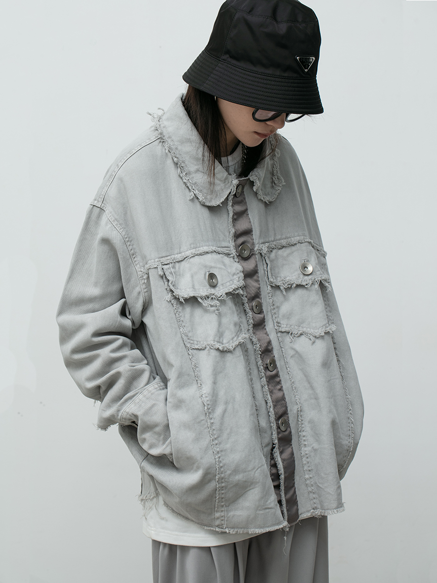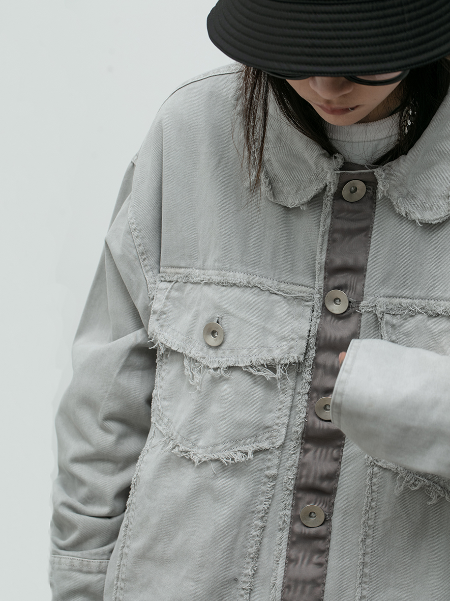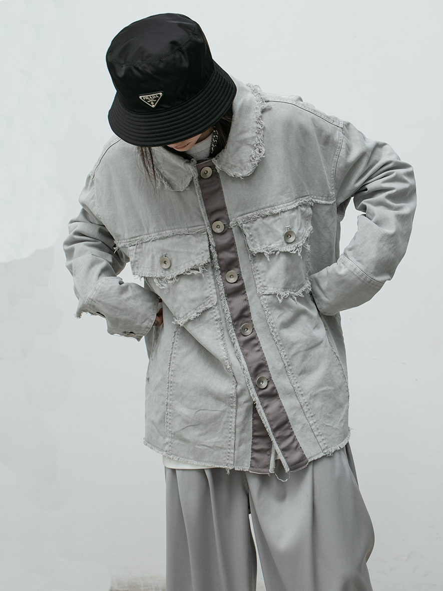 LIMPIDOCULUS(LIMS)20AW tassel furred edge dyed wash wash water make old lime white jacket coat