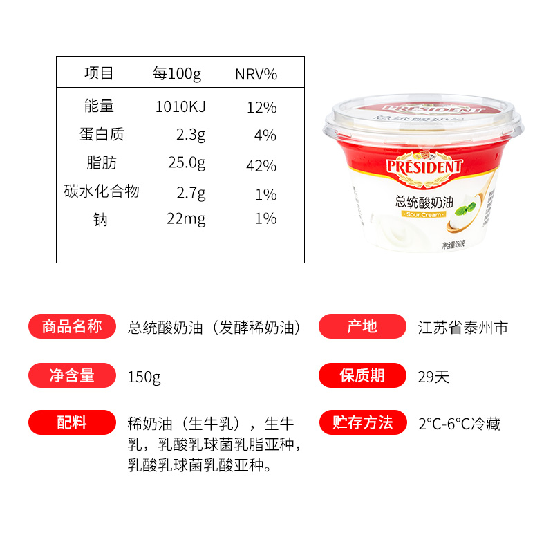 President yogurt oil 160g fermented rare cream ready-to-eat salad Western meal cake to beat birthbaking soda-Taobao