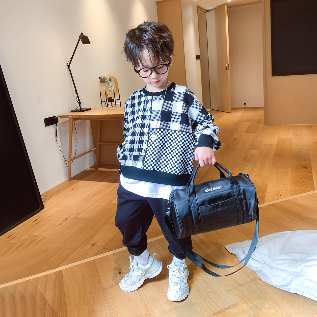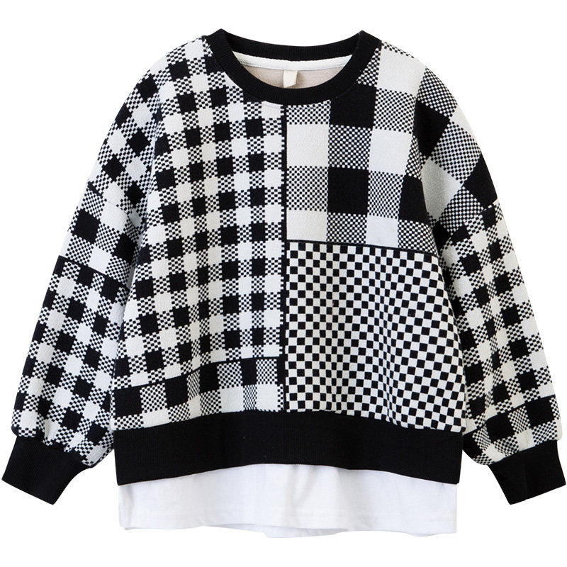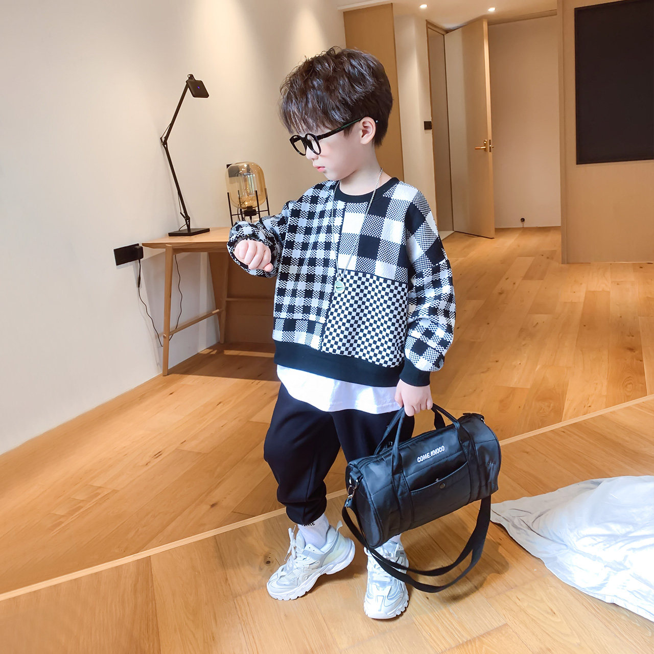Left West Children's Sweatshirt Spring and Autumn Children's Spring Tops Fried Street Boys Checkerboard Grid Foreign Trend 2022 New Model