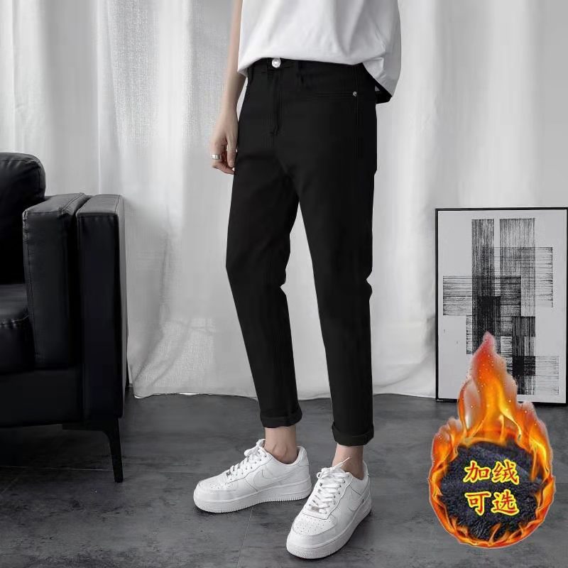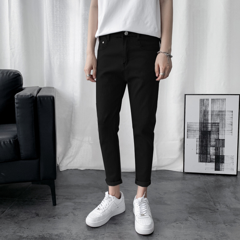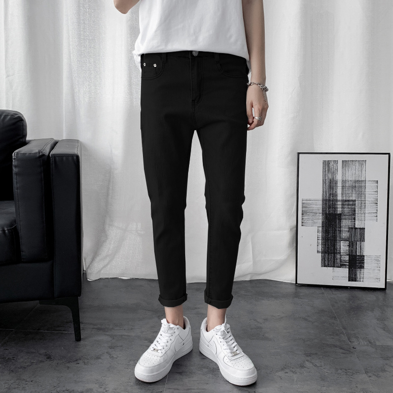 Summer slim fit black 90% jeans Men's Korean version Trend with small feet long pants 9 Sub-pants Chauffhanger
