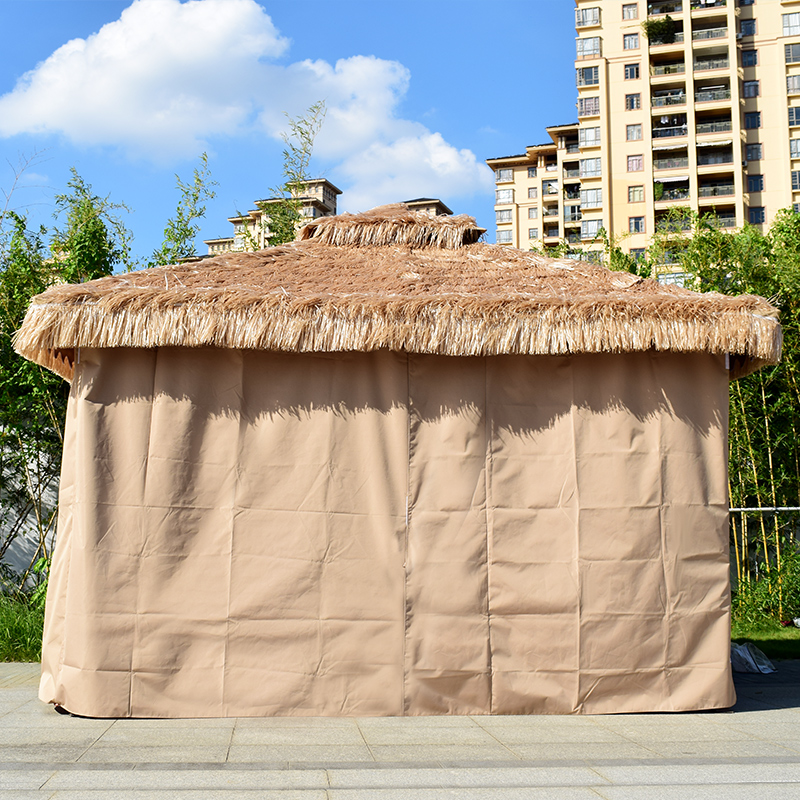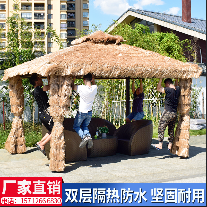 3 * 3 m imitation thatch 4-column pavilion (no apron) 3 * 3 m imitation thatch grass 4-column pavilion thatch grass circumference cloth 3 * 3 m imitation thatch grass 4-column booth yarn curtain 3 * 3 m imitation thatch 4-column kiosk waterproof round cloth 3 *
