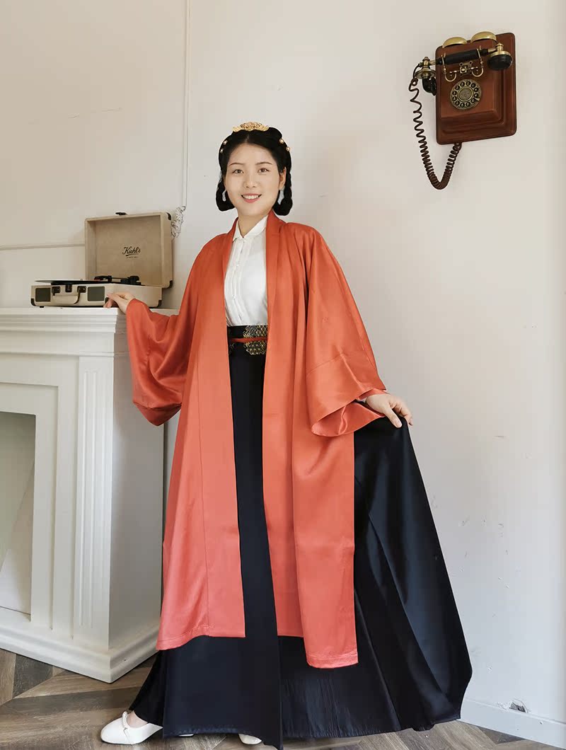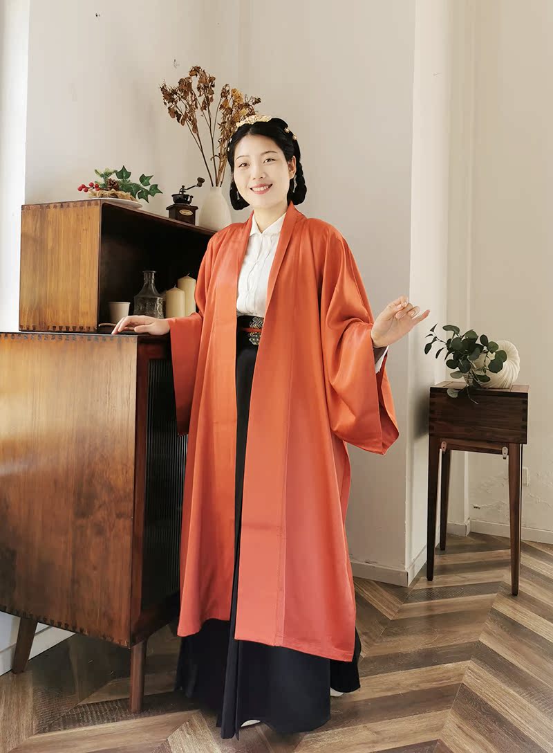 Rose ding hanfu (plum) imitation silk cotton imitation Changgan Temple wide sleeve long shirt spot persimmon color loose large amount