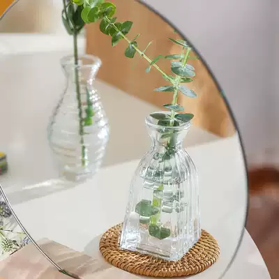 Korean ins wind striped glass vase transparent decoration room decoration Coffee shop model room retro mini bottle
