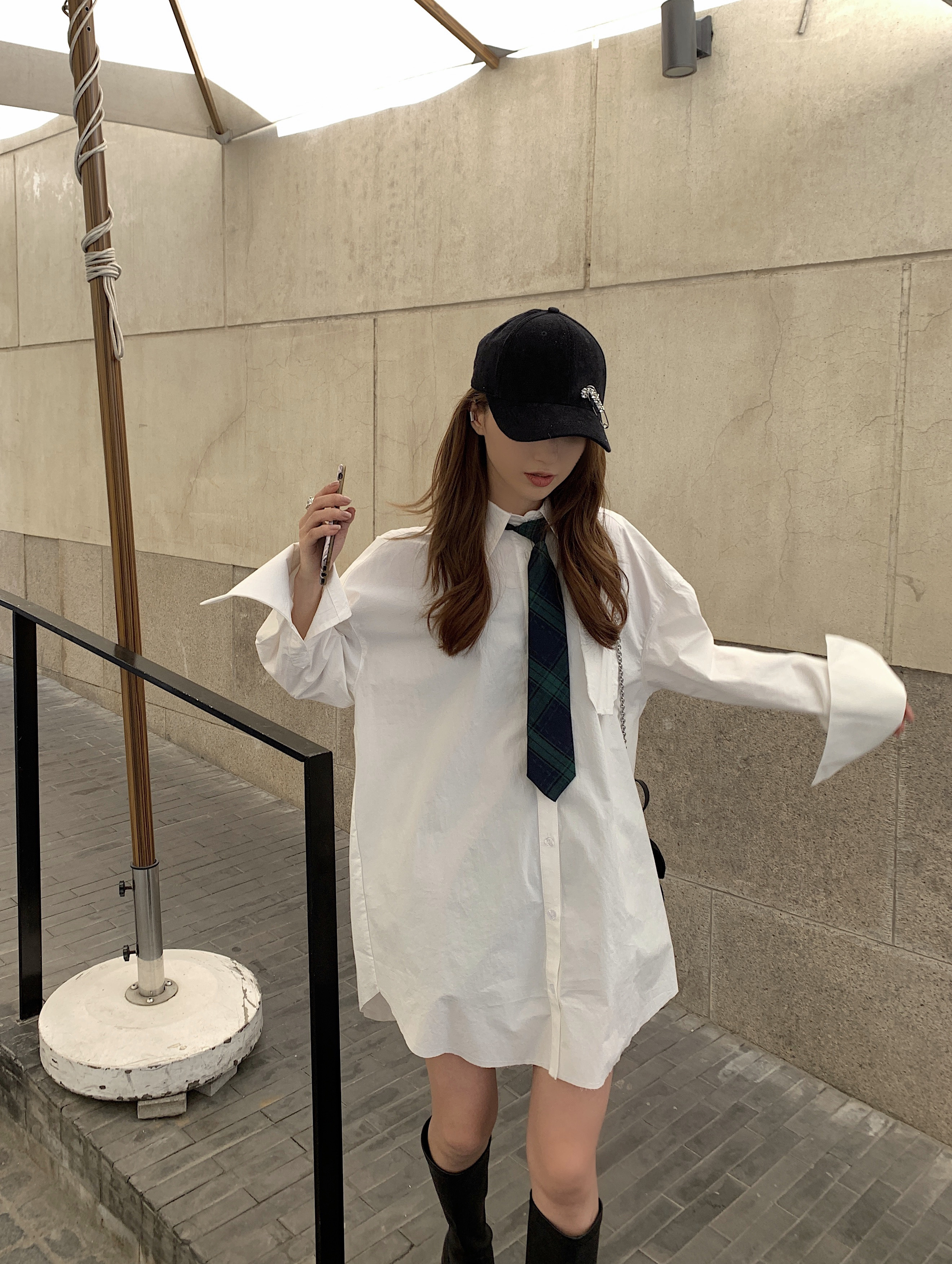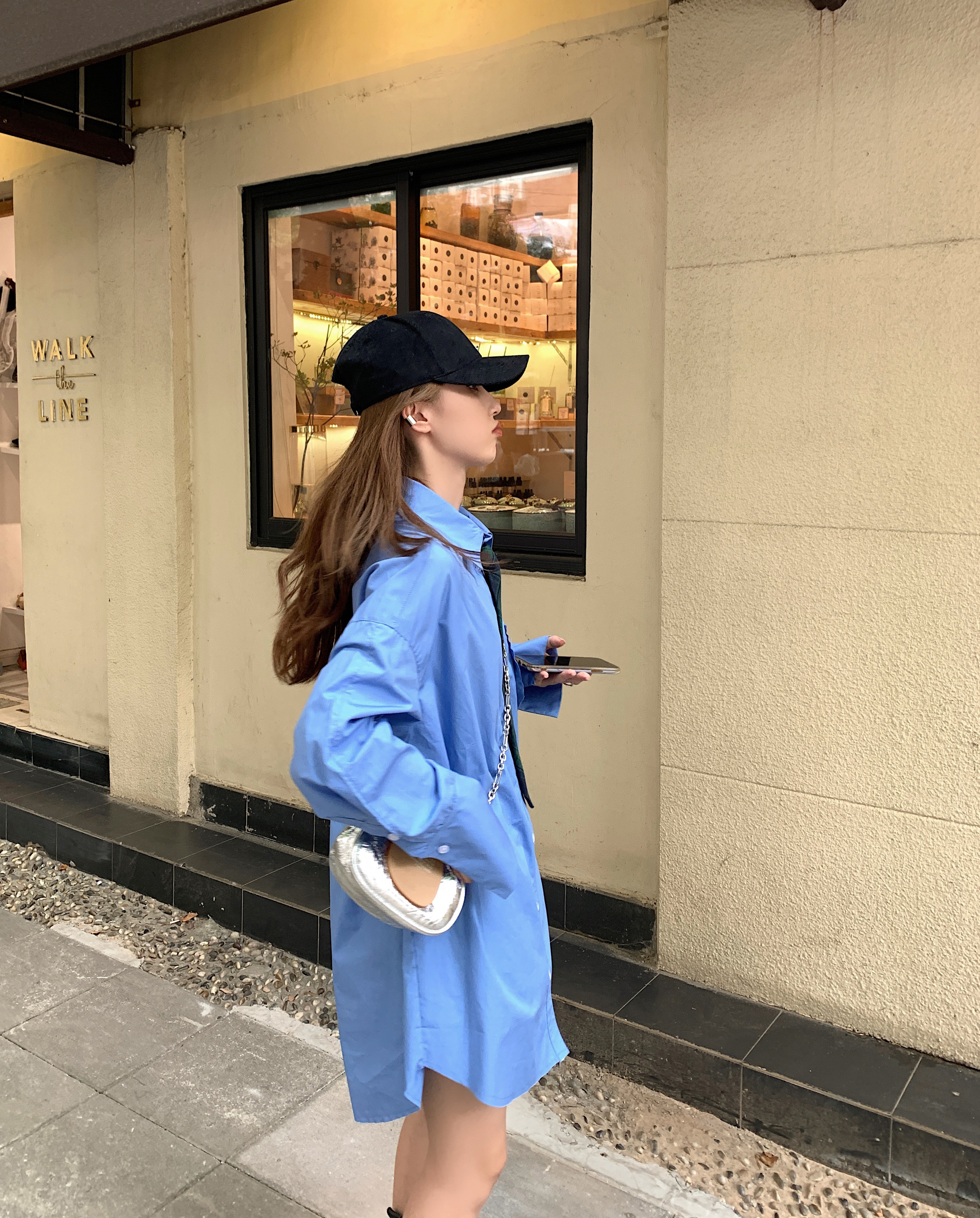Mid-length blue shirt women's outdoor wear all-match 2022 autumn new thin long-sleeved top Korean loose shirt