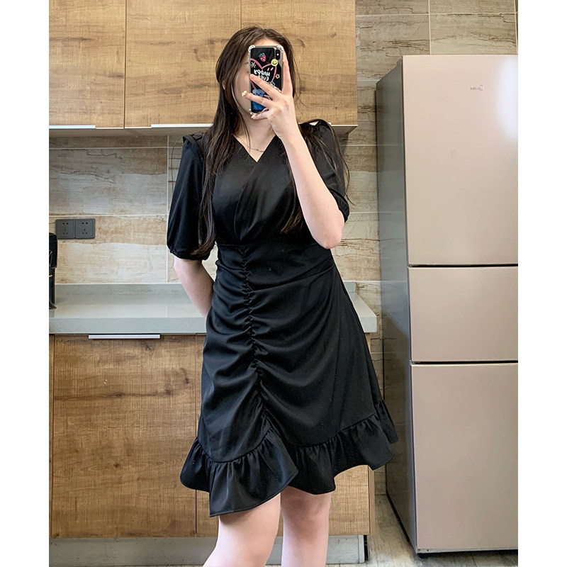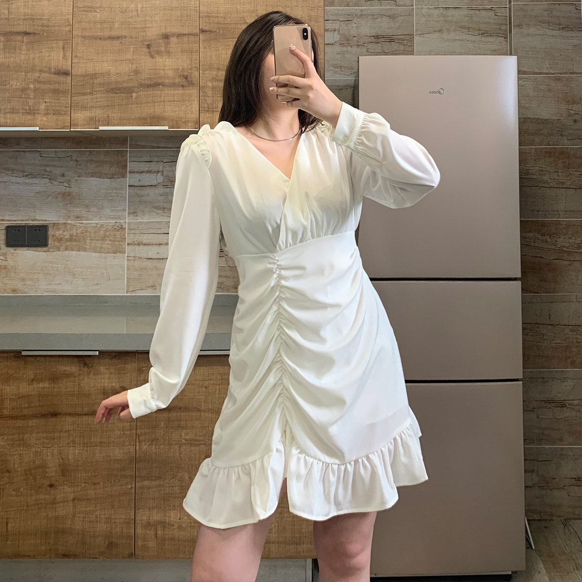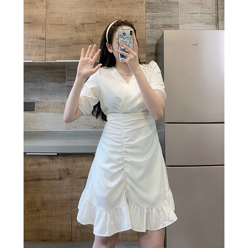 Black folding irregular dress white folding irregular dress black short sleeve white short sleeve
