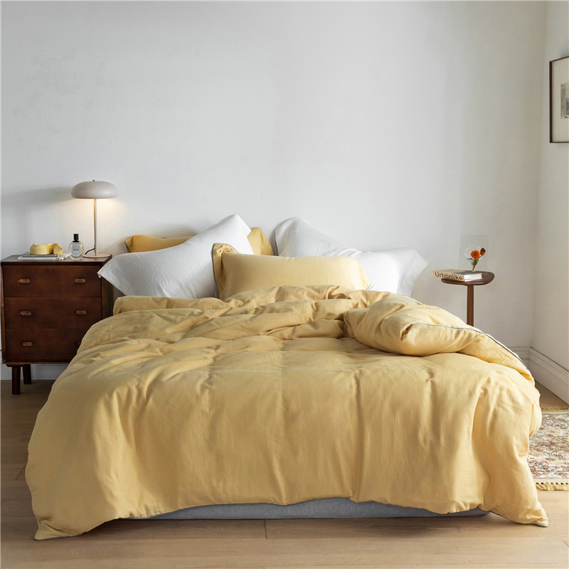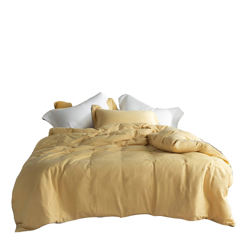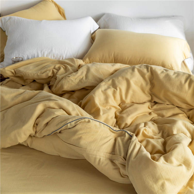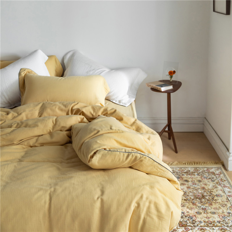 Mori Japanese pure color cotton double yarn four piece set of simple edge clash color modern Nordic style bedding