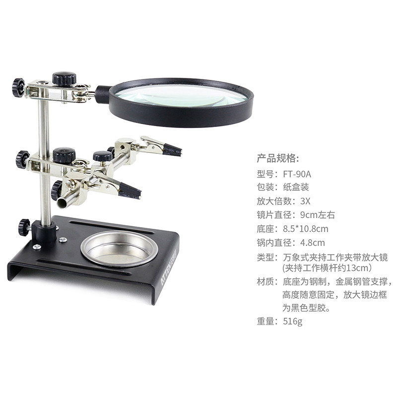 Anteletter FT-90A Desktop Magnifier 3 Times Multifunction Breadboard Sub-Clamp Welding Repair Auxiliary Bracket