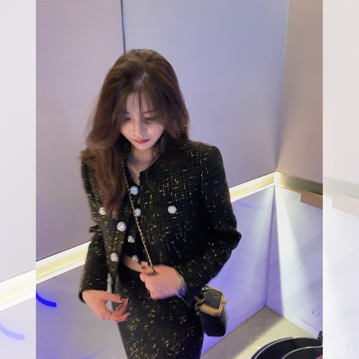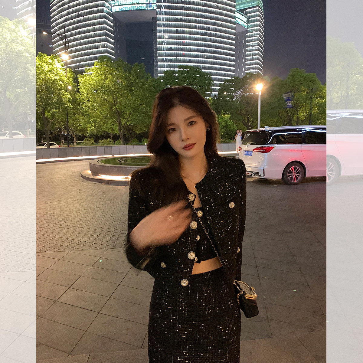 CloudSweet Xiaoxiang Group Night~C debut Xiangxiangzi tweed short coat and half skirt three-piece set