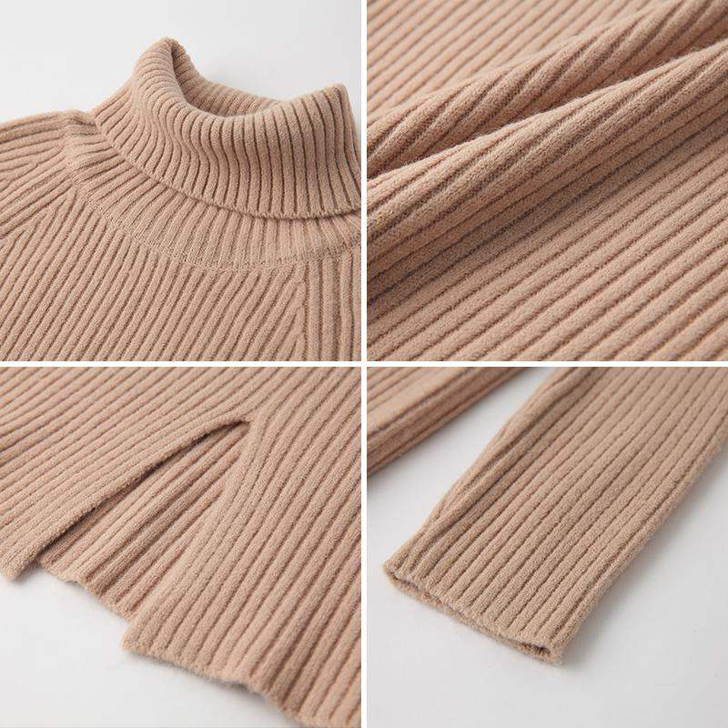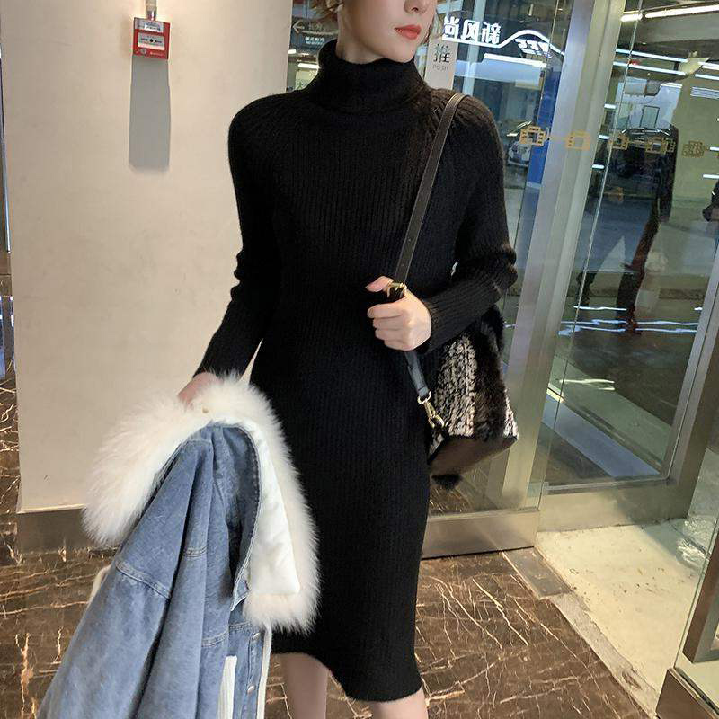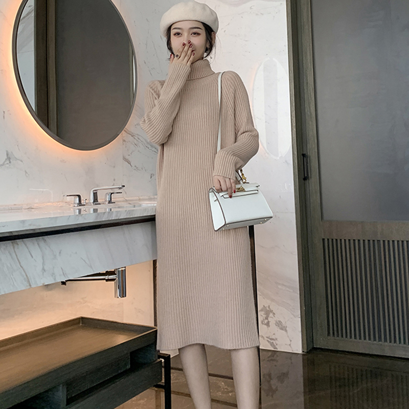 A small man with a high-collar knitting dress woman in autumn and winter after fork to finish the long knee dress