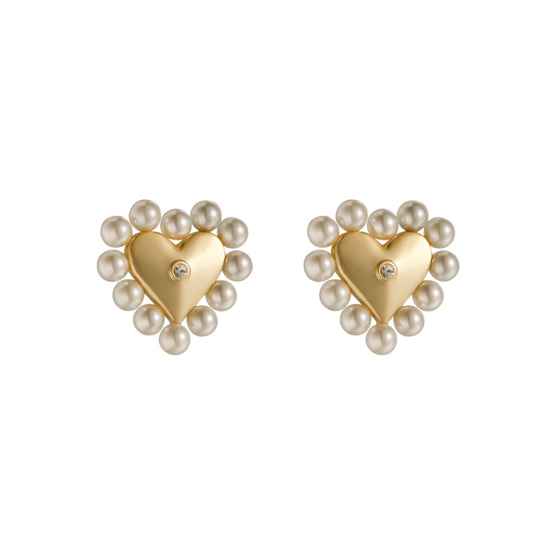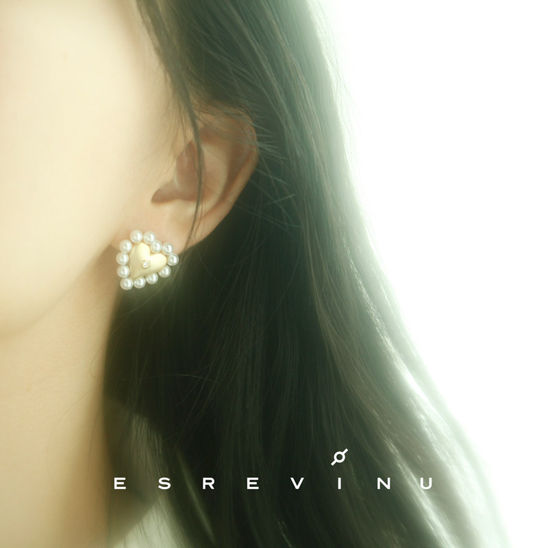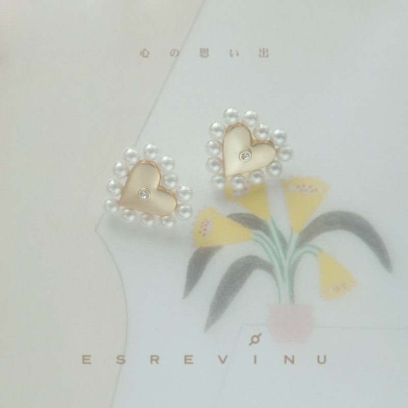Cosmic mark "heart-shaped memory" ear needle retro sweet, cool and cute niche pearl female earrings ins style