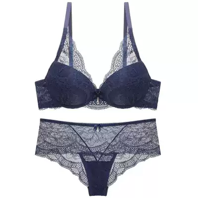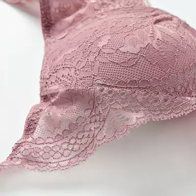 Full lace underwear set deep V gather up to support sexy bra small chest big lady bra Red year
