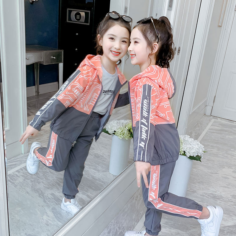 Girl autumn suit 2021 new spring and autumn children's foreign style tide children's clothing girl sports two-piece Net red clothes